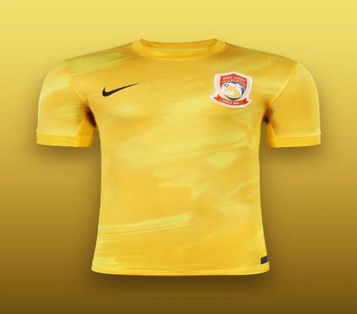 新赛季青岛西海岸队主场战袍,以明亮黄调为主色并辅以渐进晕染设计,搭配深邃黑色细节勾勒轮廓。色彩的碰撞与线条的延展,交织出如巨龙腾跃般的磅礴力量感,寓意球队奋勇向前的昂扬态势。